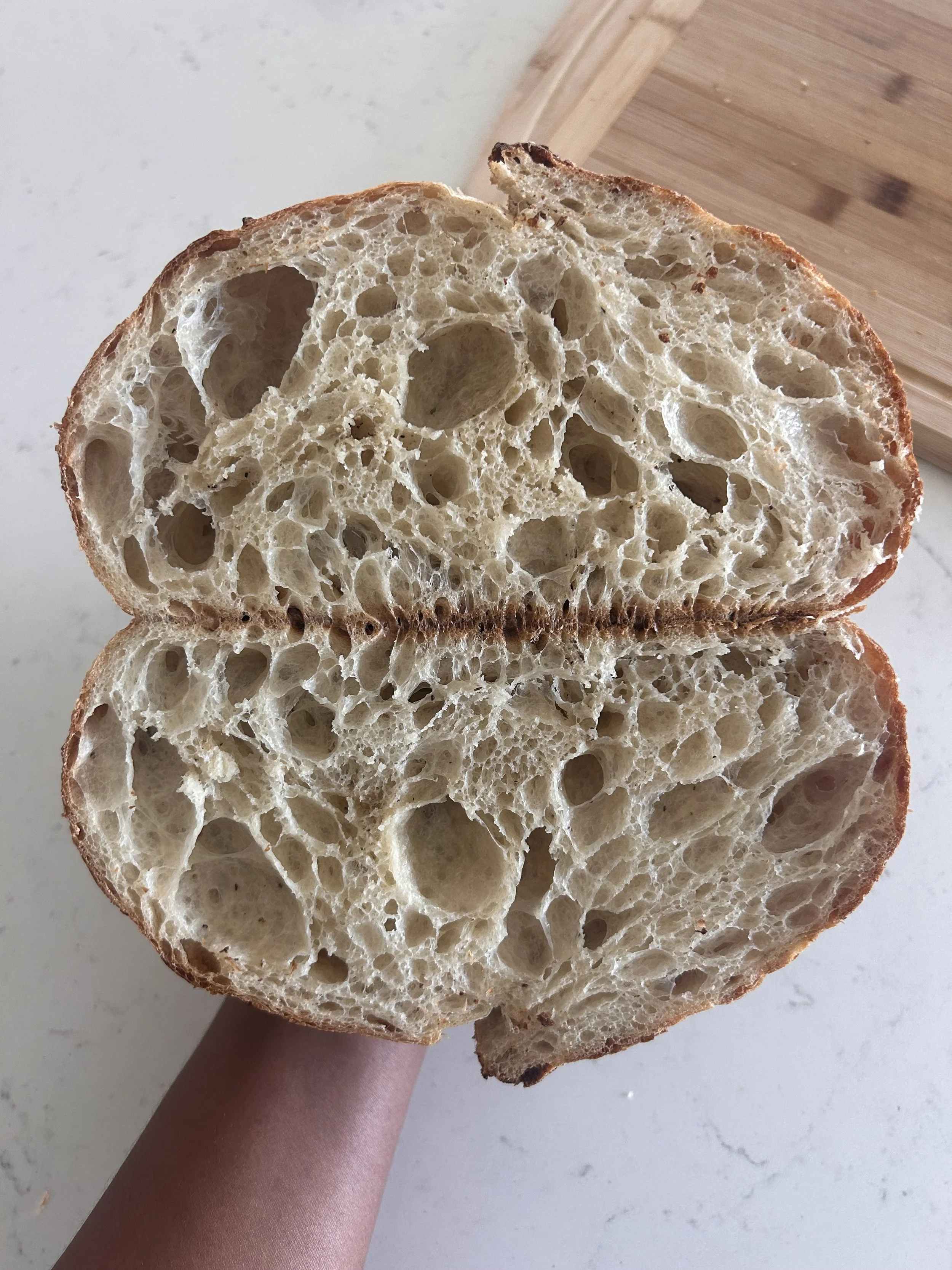 “This bread is everything I'm not. Perfectly crusty on the outside, pillowy soft on the inside!! If I could marry this bread I would. Courtney has perfected the art of making sourdough. You simply must try it!! You'll be hooked. 🤤”